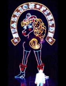 (the towering "Stallion Fields" brothel sign with its moving horse
